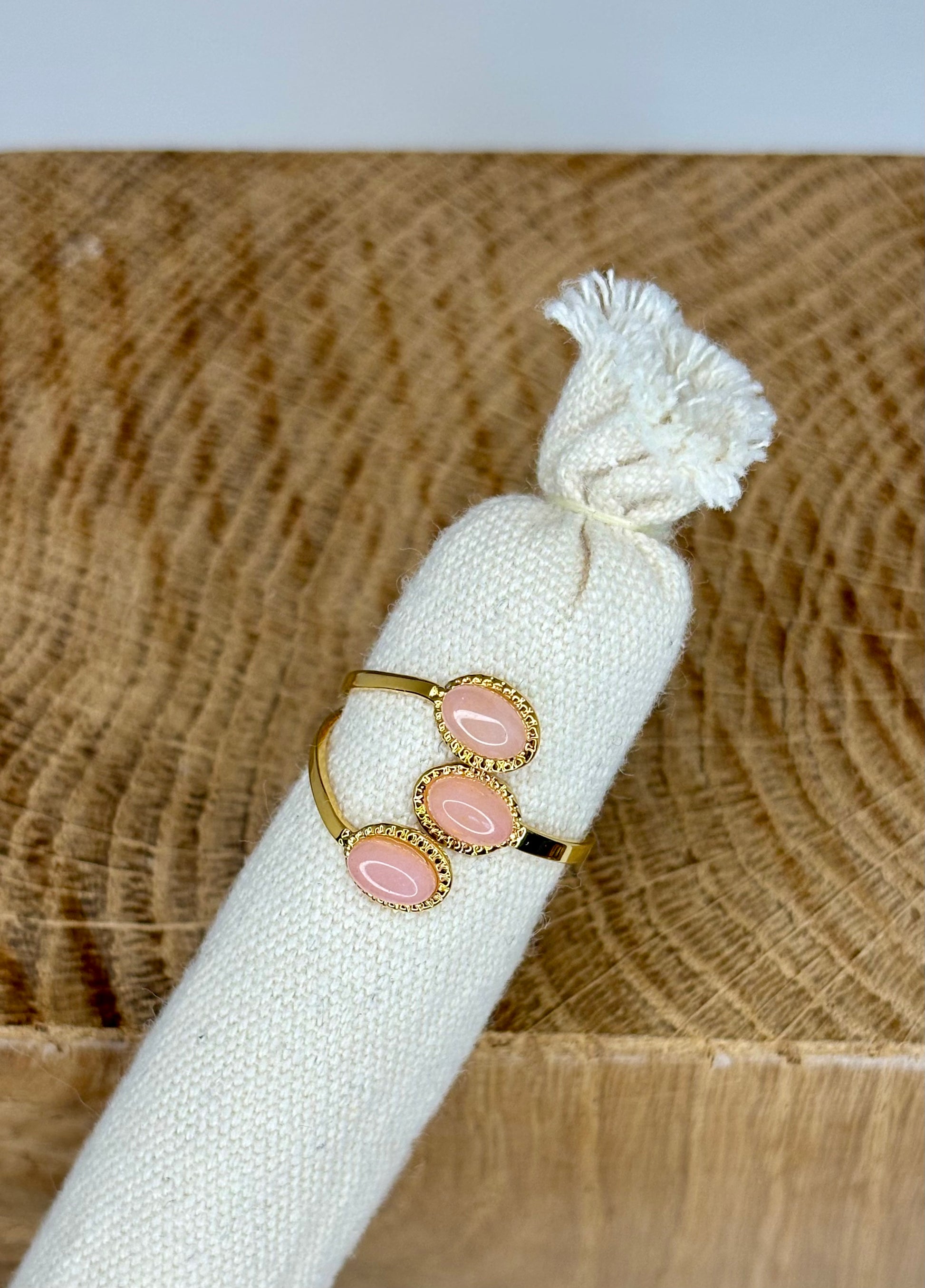 - Sertie de 3 pierres naturelles roses