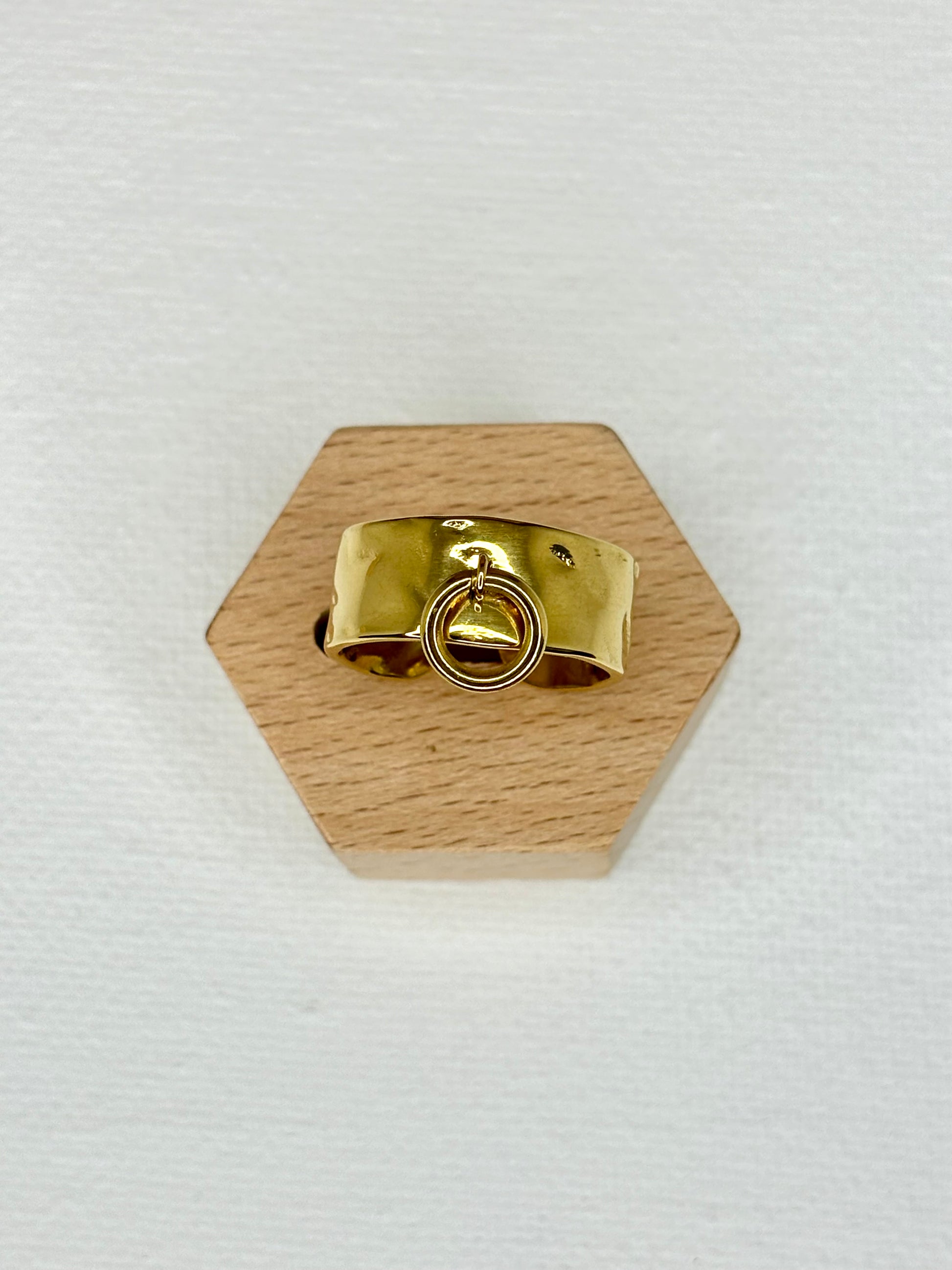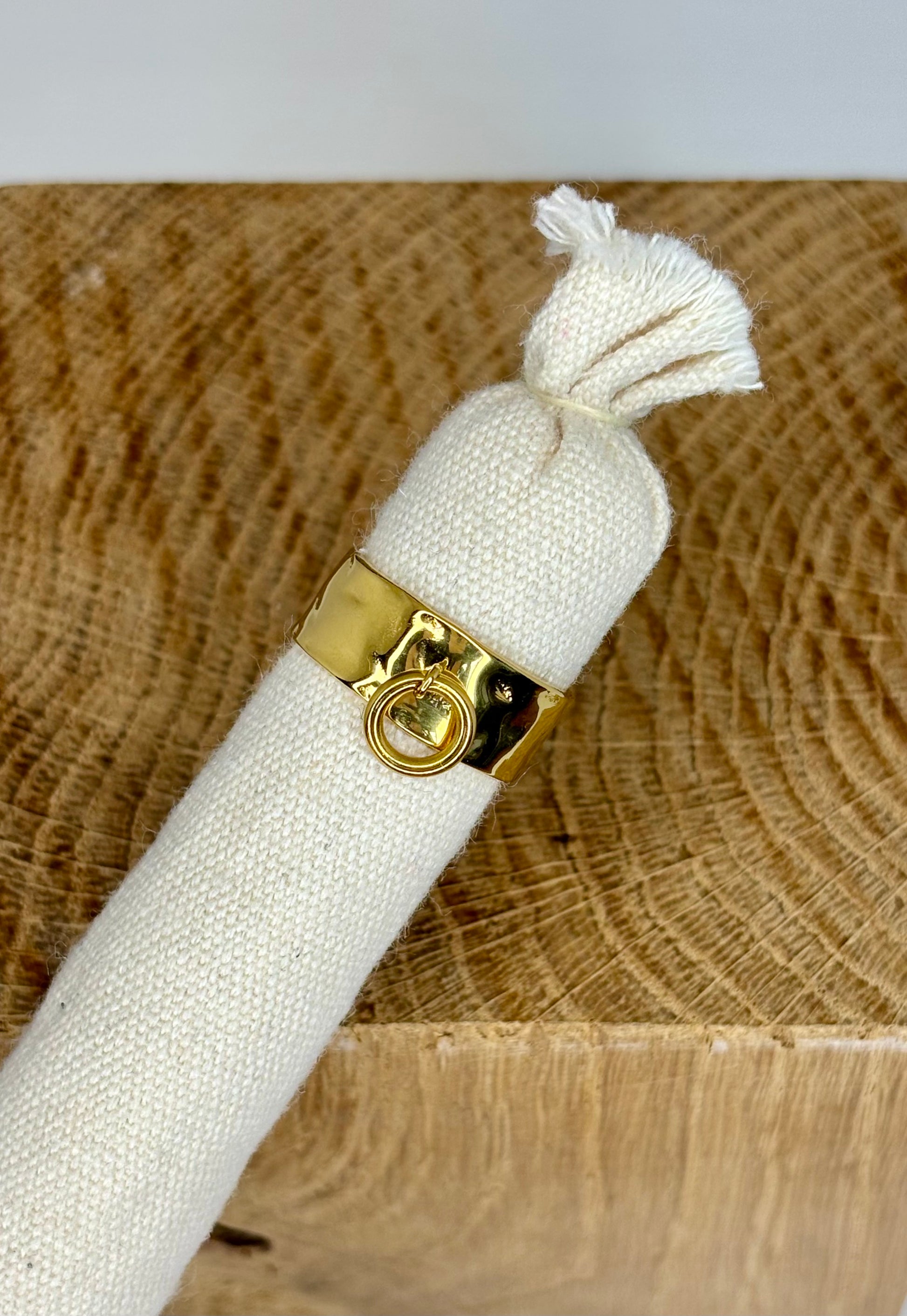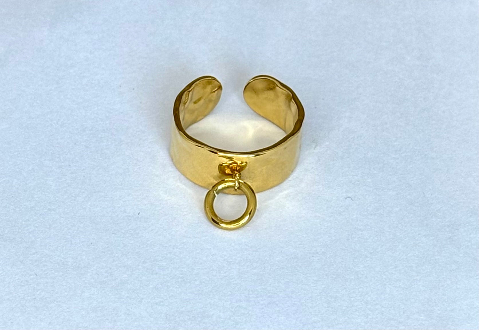 - Bague en acier inoxydable martelé doré