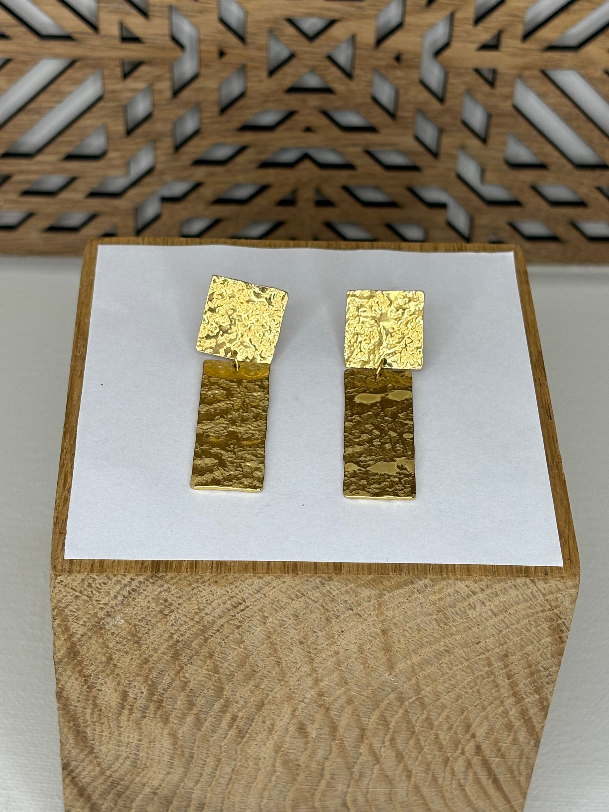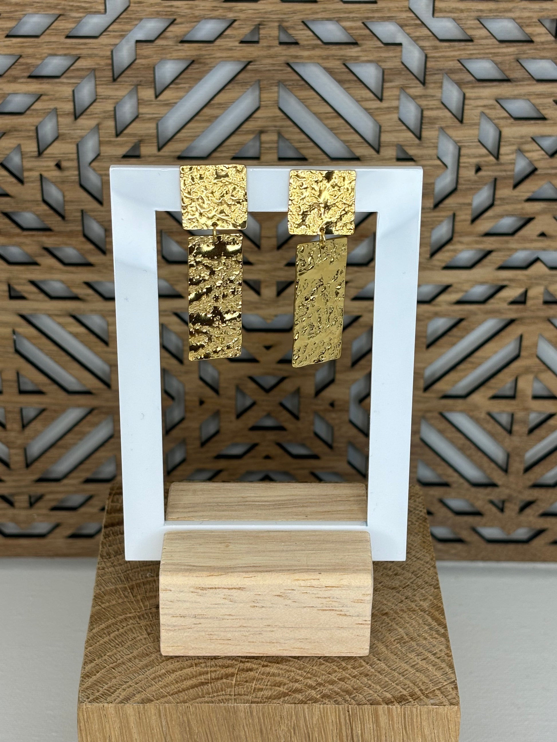 - Boucles d’oreilles en acier inoxydable martelé doré