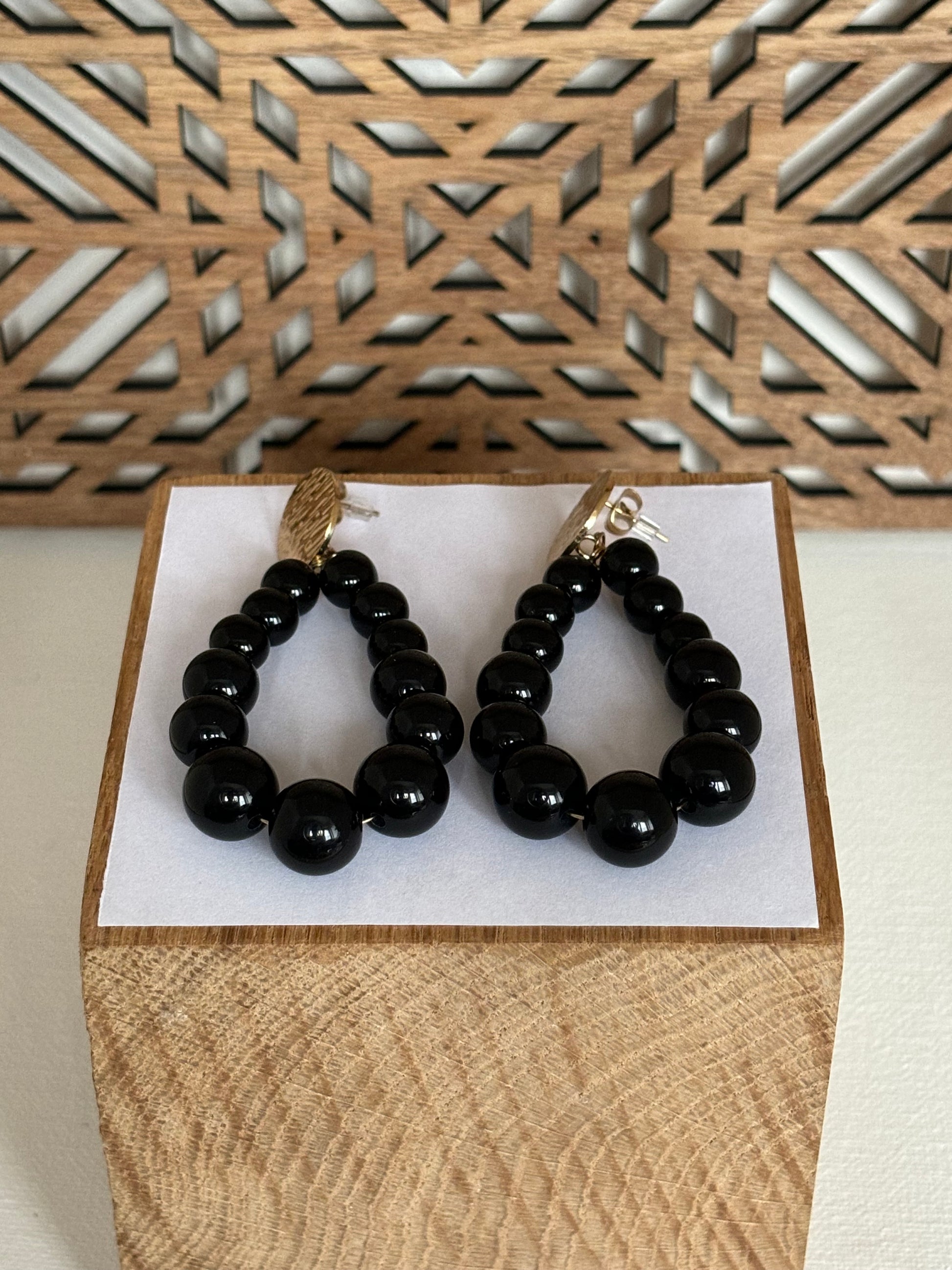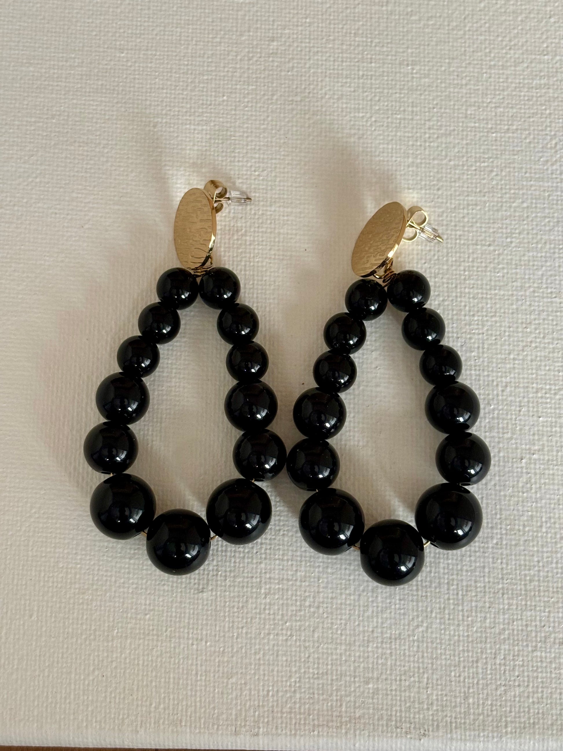 - Boucles d’oreilles en acier inoxydable doré et perles noires