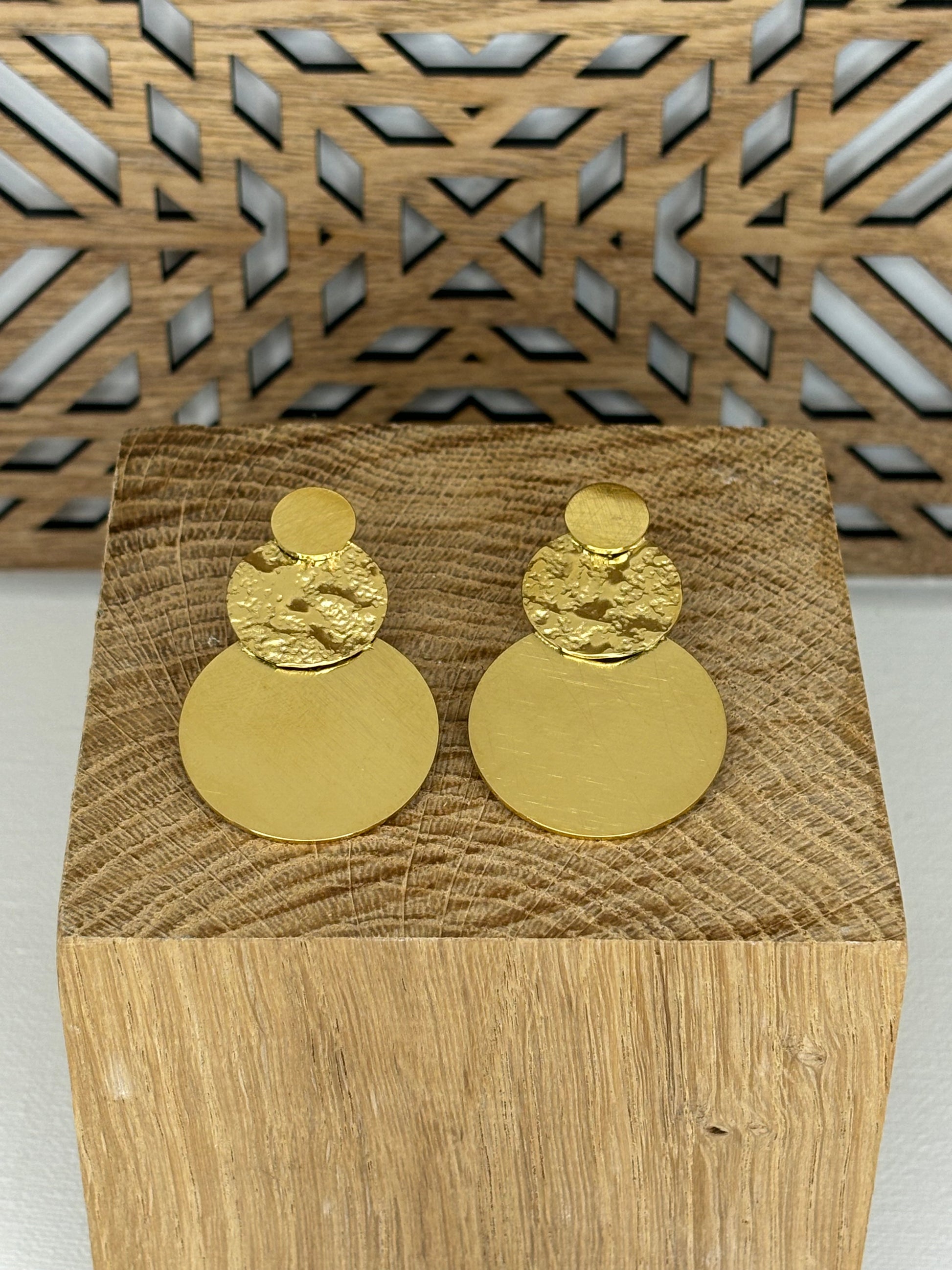 - Boucles d’oreilles en acier inoxydable martelé et brossé doré