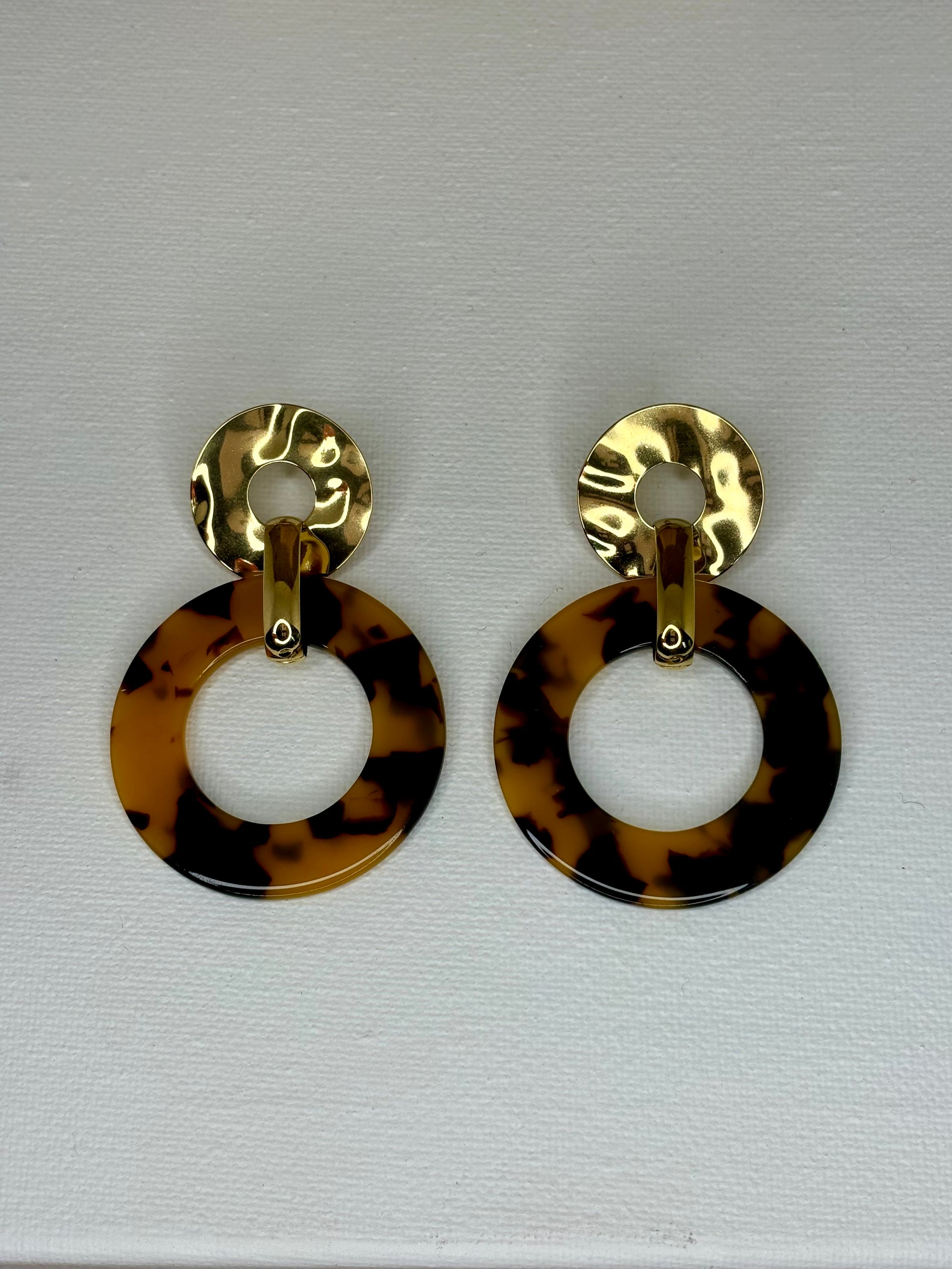- Boucles d’oreilles en acier inoxydable doré et cercle léopard en résine