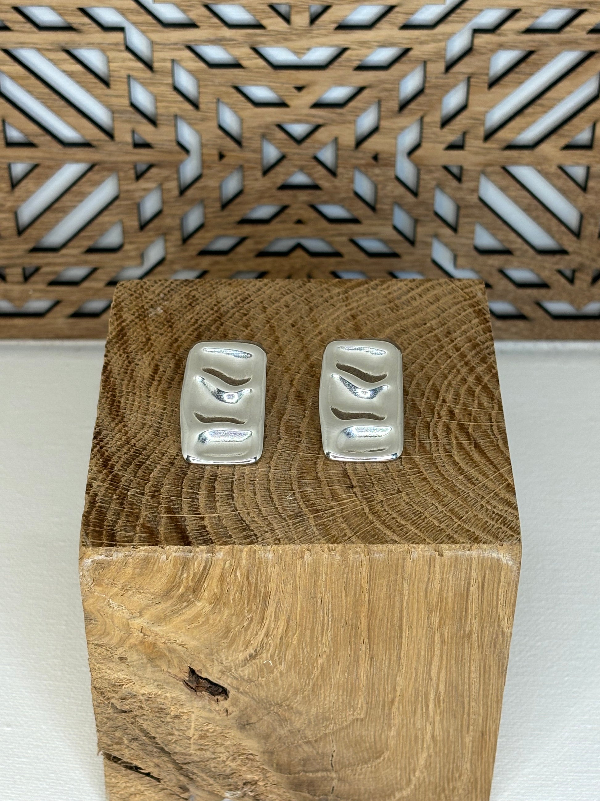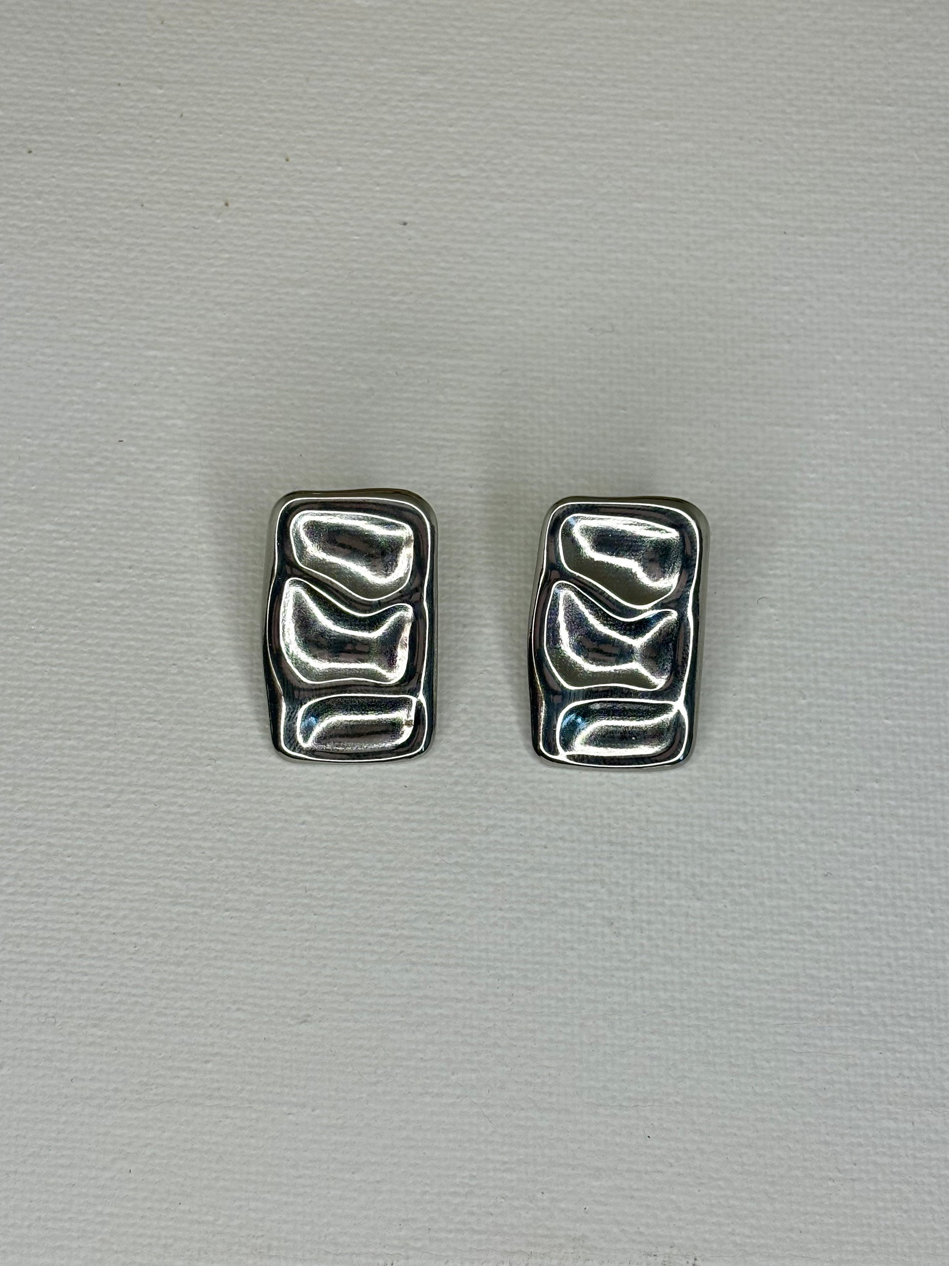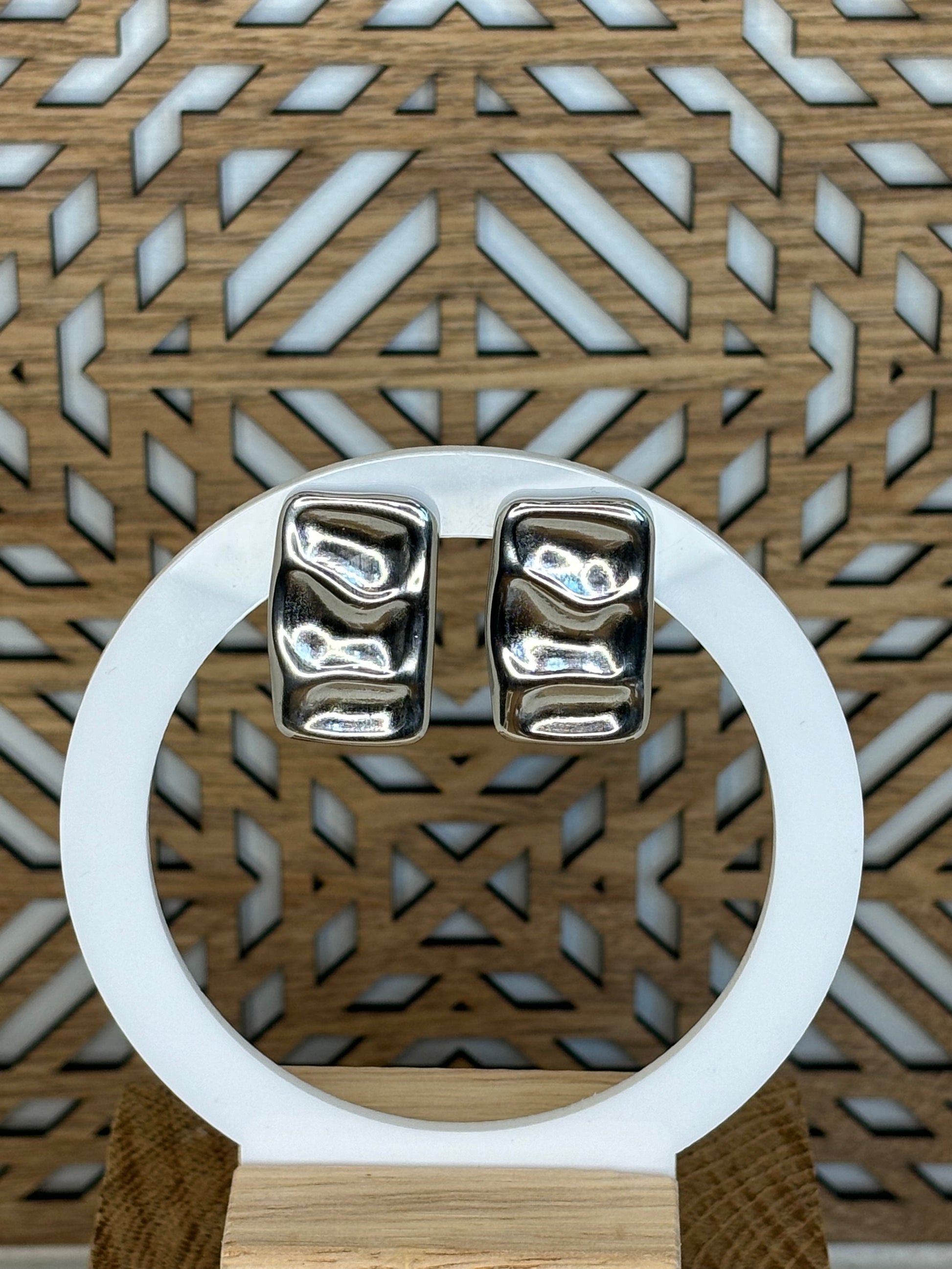 - Boucles d’oreilles en acier inoxydable martelé argenté
