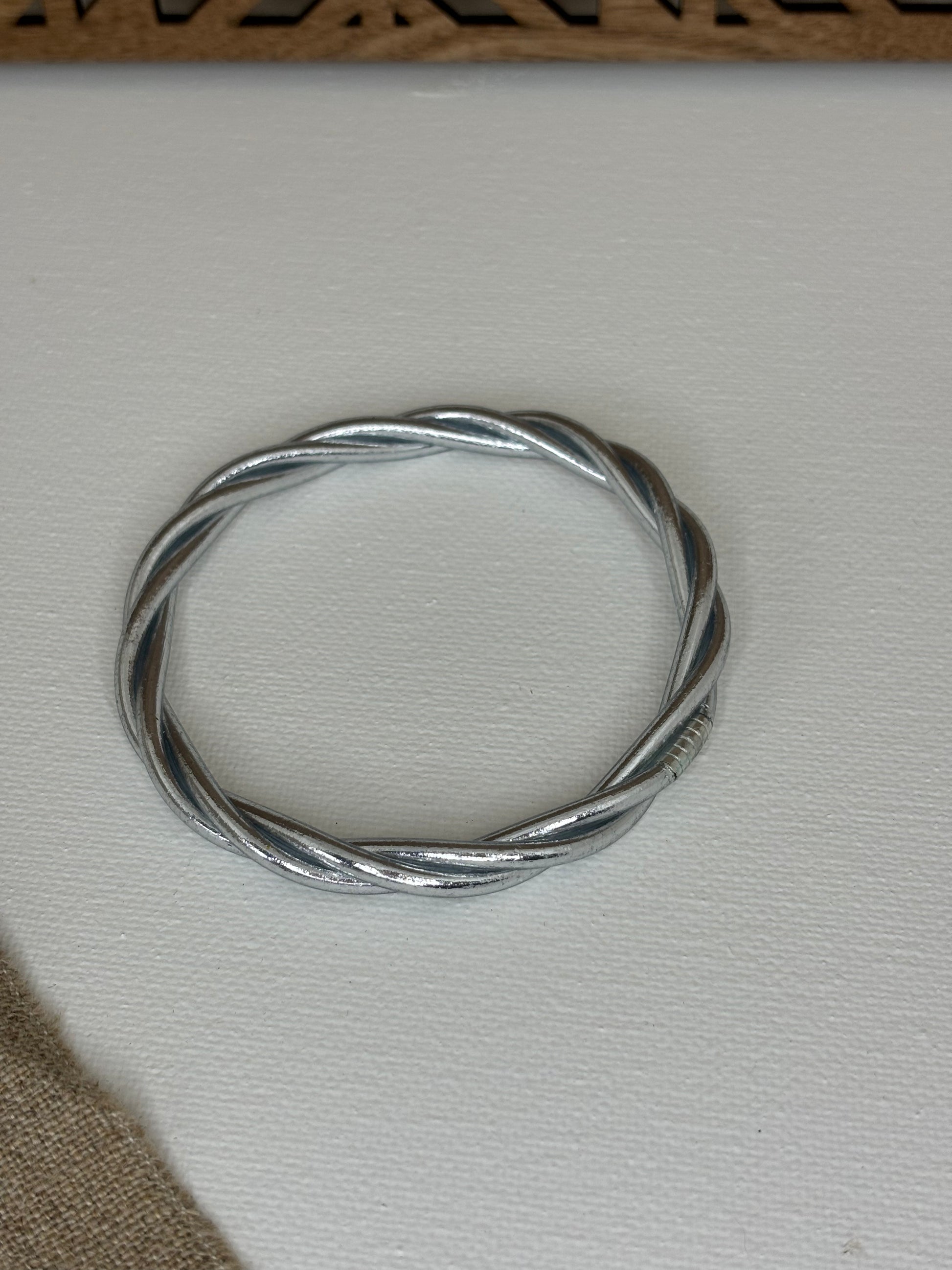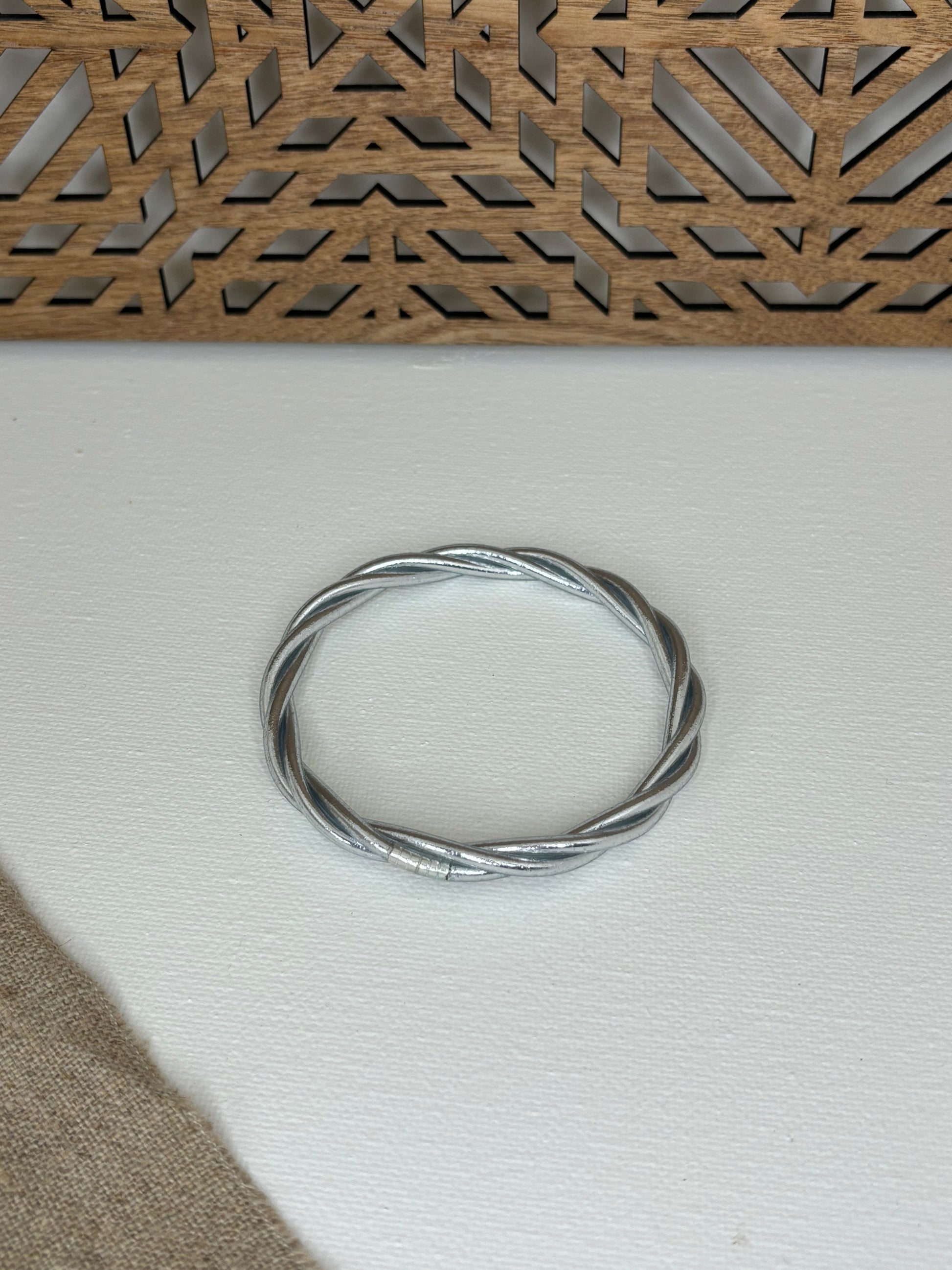 Cet authentique jonc souple est en caoutchouc naturel, rempli de feuilles d’argent et d’une huile sacrée. Il est scellé grâce à un mantra porte-bonheur en laiton.