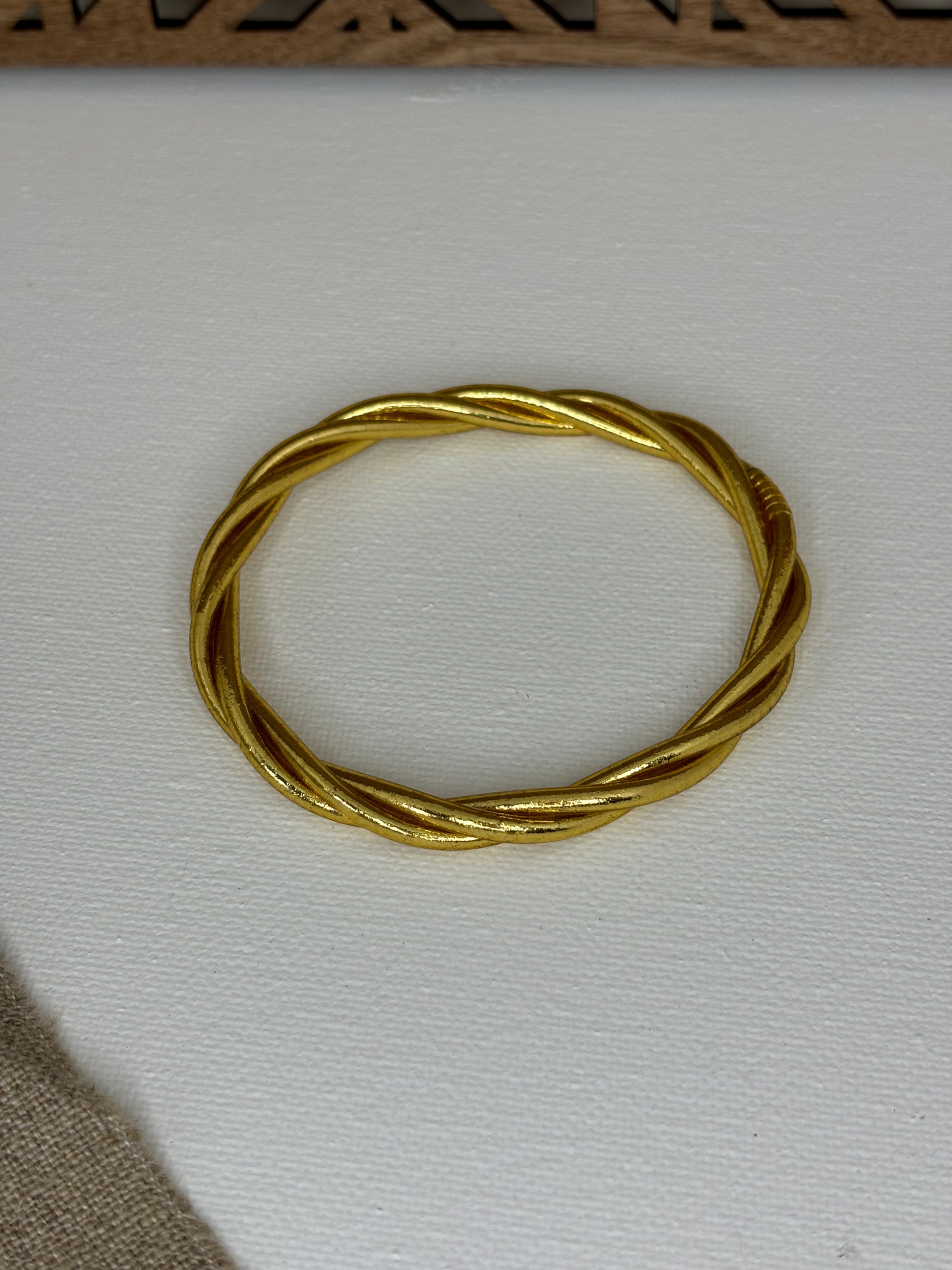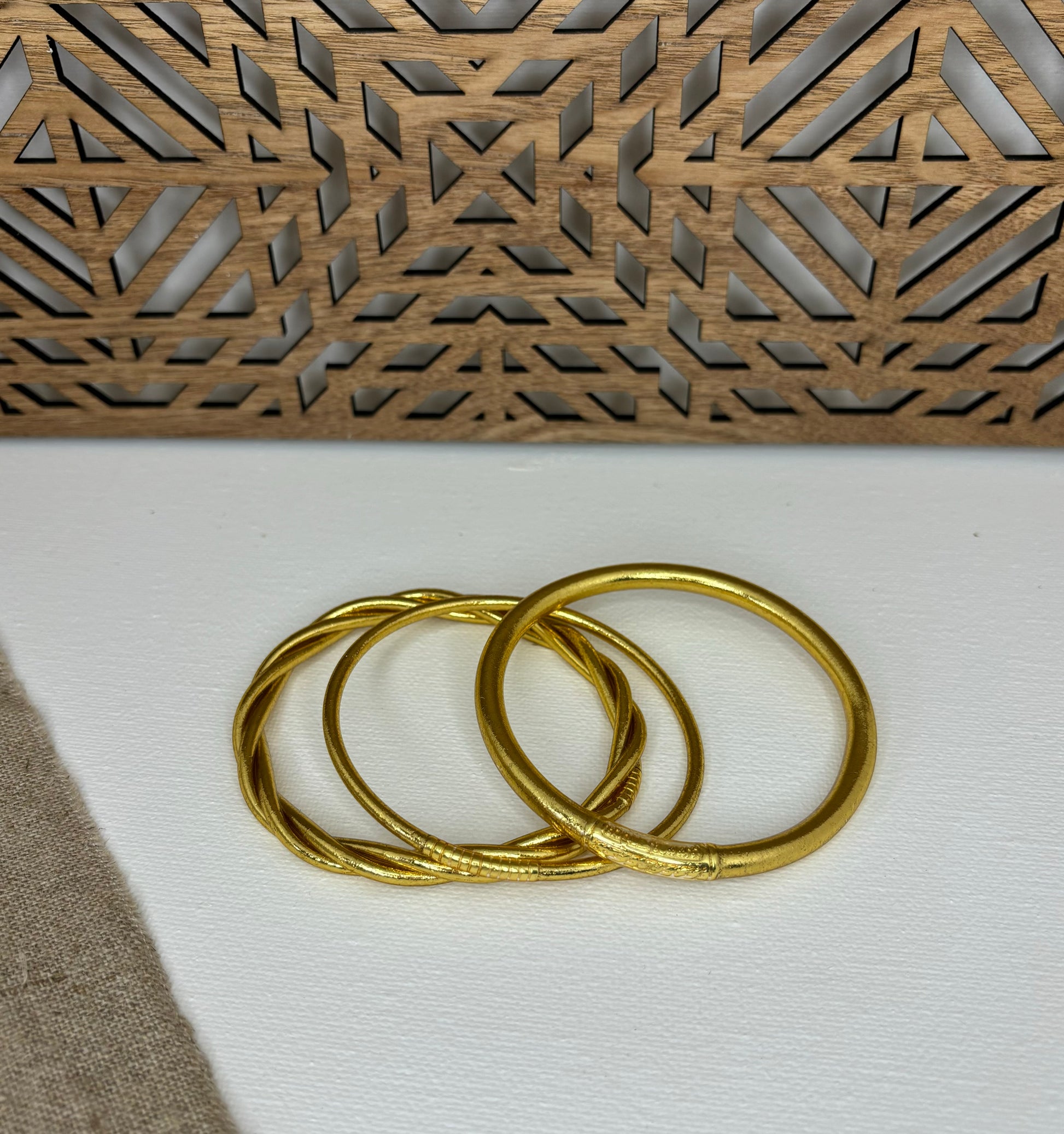 Cet authentique jonc souple est en caoutchouc naturel, rempli de feuilles d’or et d’une huile sacrée. Il est scellé grâce à un mantra porte-bonheur en laiton.